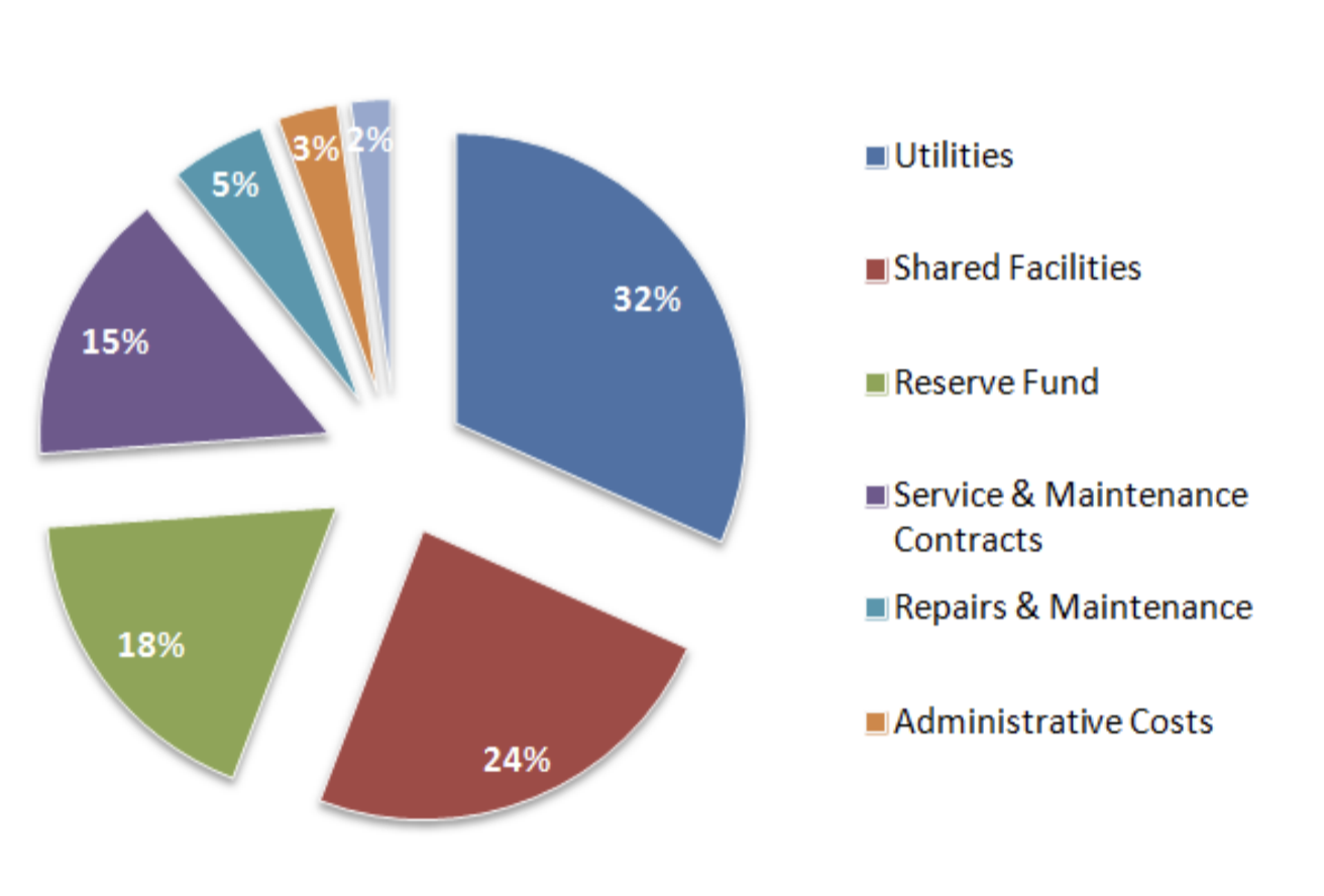 - Shared facilities: $435,000 (24 per cent) In this case, the condominium corporation is part of a larger development with shared recreational and other facilities. The corporation’s contribution to the operating costs of these shared facilities comprises approximately 24 per cent of the annual budget.